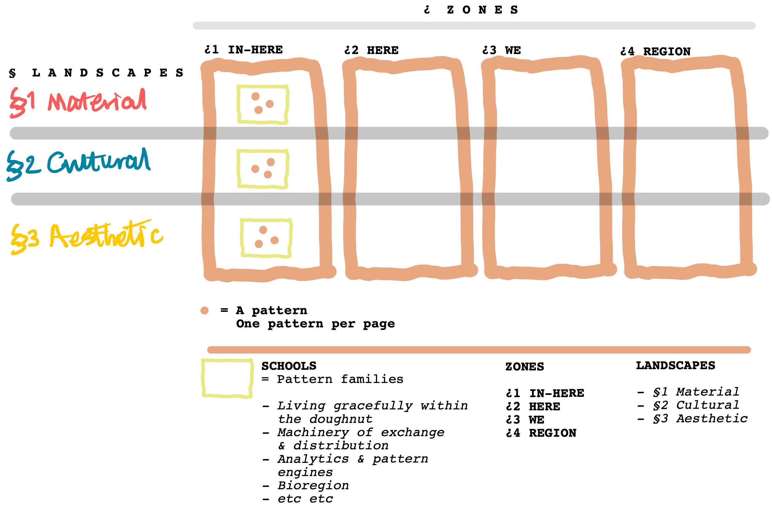 The first is the scope-hierarchy (not scale hierarchy) of ¿zones: - ¿1 In-here - ¿2 Here - ¿3 We - ¿4 Region Not a nested system of material extents or logical domains, but a peer-system of directions or 'compass points' to face in.